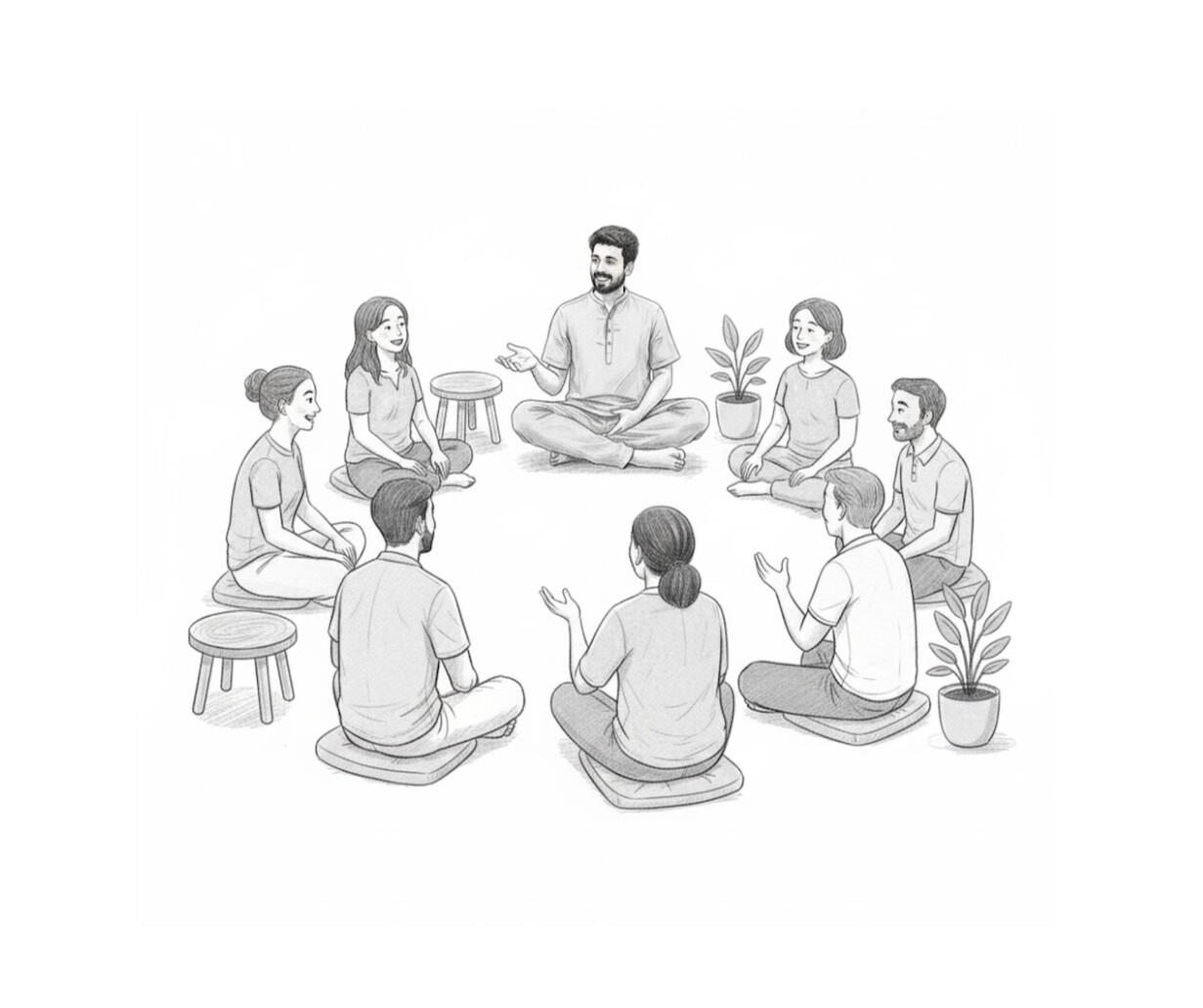 A shared journey of witnessing, shifting and transformation. People leave with a community without noise, accountability without force, and depth without getting lost.